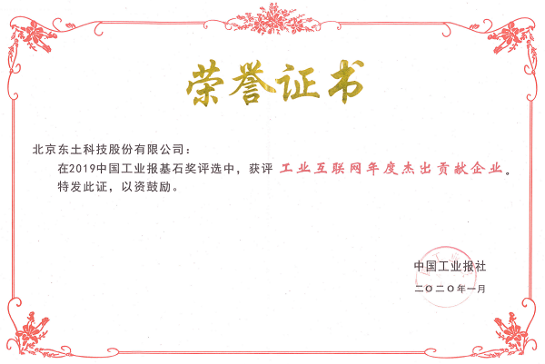 在2019中国工业报“基石奖”评选中,获评年度大奖 “工业互联网年度杰出贡献企业”