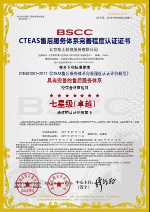 2019年9月11日,在工业互联网产品及解决方案领域,率先获得CTEAS售后服务体系完善程度认证七星级卓越证书