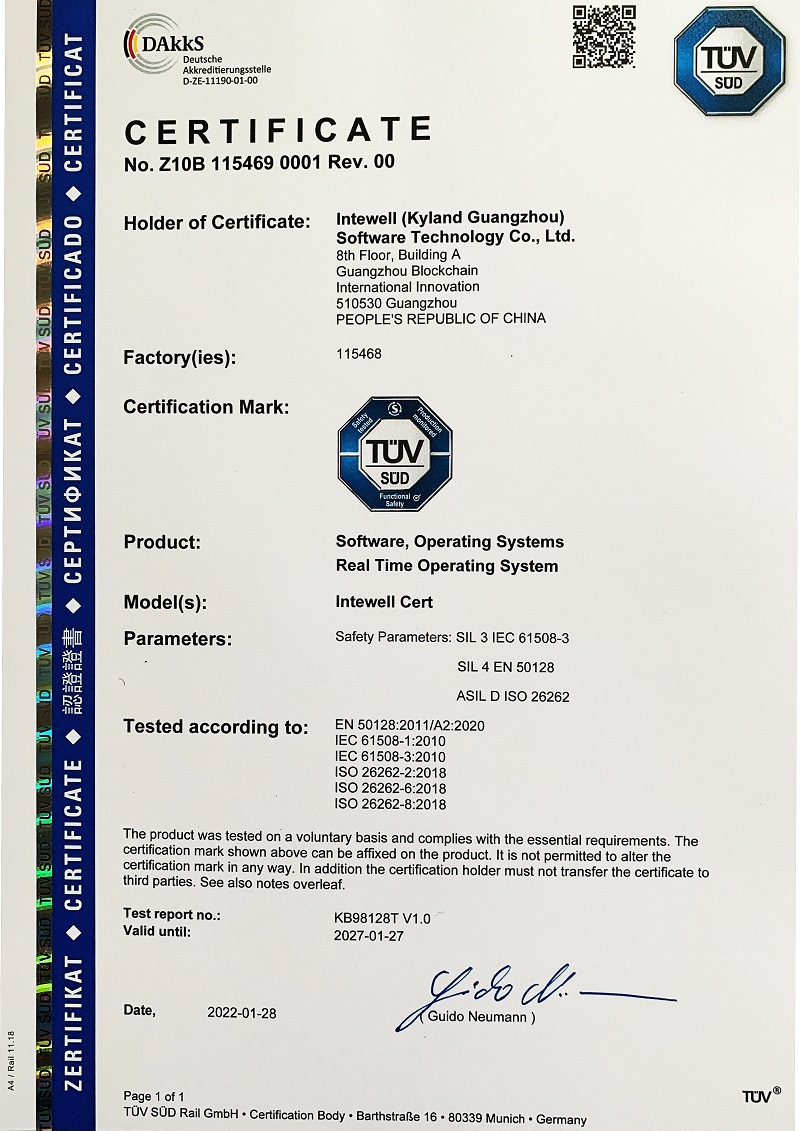 2022年2月, 通过TUV南德三项功能安全认证