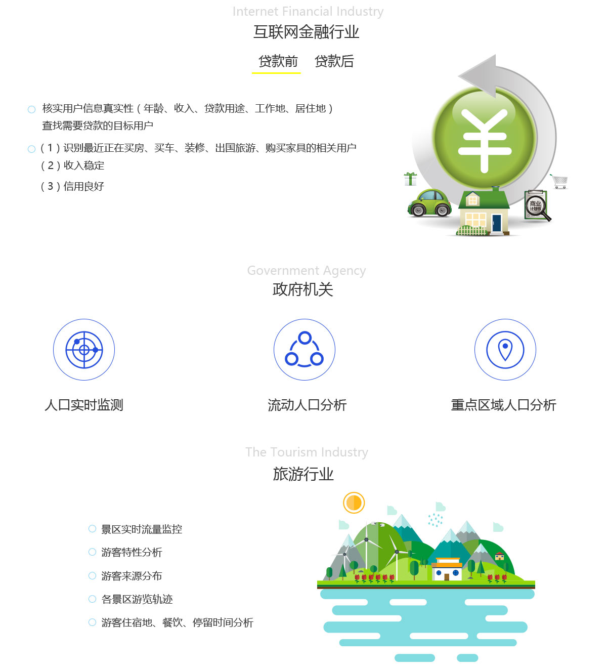 服务于政府及企业,在大数据领域积淀丰富的经验,同时拥有专业的人才力量,针对于不同行业、不同领域的应用,为政府及企业的管理和发展方向做出精准的决策。