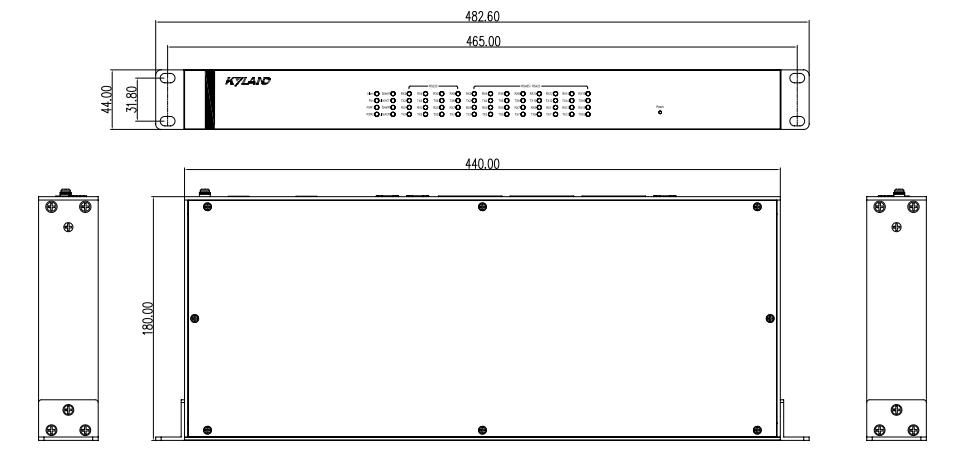 | 物理特性 | 散热方式;自然冷却,无风扇 防护等级:IP40 安装方式:19英寸1U机架式 外壳:金属材质 尺寸(W×H×D):482.6mm×44mm×200mm 包装尺寸:570mm×325mm×445mm 安装方式:标准1U 19英寸机架式 |