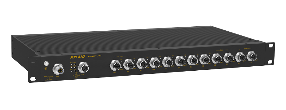 Aquam8112-1U分别是专为轨道交通行业设计的二层网管型工业以太网交换机, 支持 12个千兆以太网接口,其中4 个为千兆Bypass端口,PoE型号可包含8个千兆或百兆PoE网口。产品为1U机架式安装,支持宽范围(-40~+70℃)的可操作温度,满足 EN50155、EN50121等轨道交通行业标准的要求。支持全端口 M12接口形式,保证端口连接及整机的密封性和牢固性,尤其适合有强烈的振动和冲击的应用场景。Aquam8112-1U 以太网交换机支持用于 IP 地址自动分配的 DHCP 协议及多种 DHCP option 选项,并且支持 DRP 和 RSTP 环网冗余协议,可以灵活组网,以满足铁路市场的需求。Aquam8112-1U系列交换机符合IEC62443-4-2工业网络安全标准。