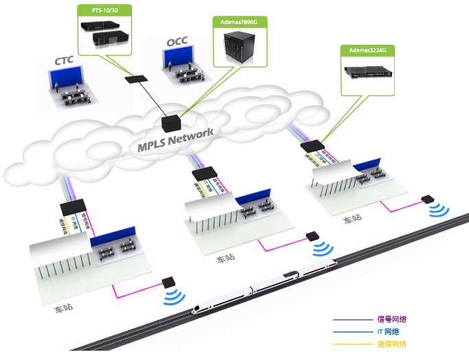传统铁路通信骨干网通过SONET/SDH或者纯以太网承载各种数据业务,如PIS/PA,BAS,FAS,CCTV,IT,ISCS,视频会议以及数据通信,通过独立的信号网络承载CBTC、CTCS等信号控制信息。如今随着技术发展,信号业务和数据业务融合已经成为越来越普遍的应用模式。