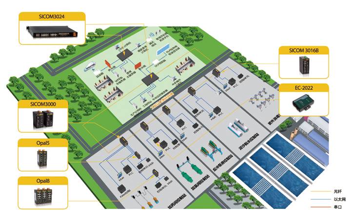 满足净水厂各生产环节的设备,如PLC,摄像头等的接入
