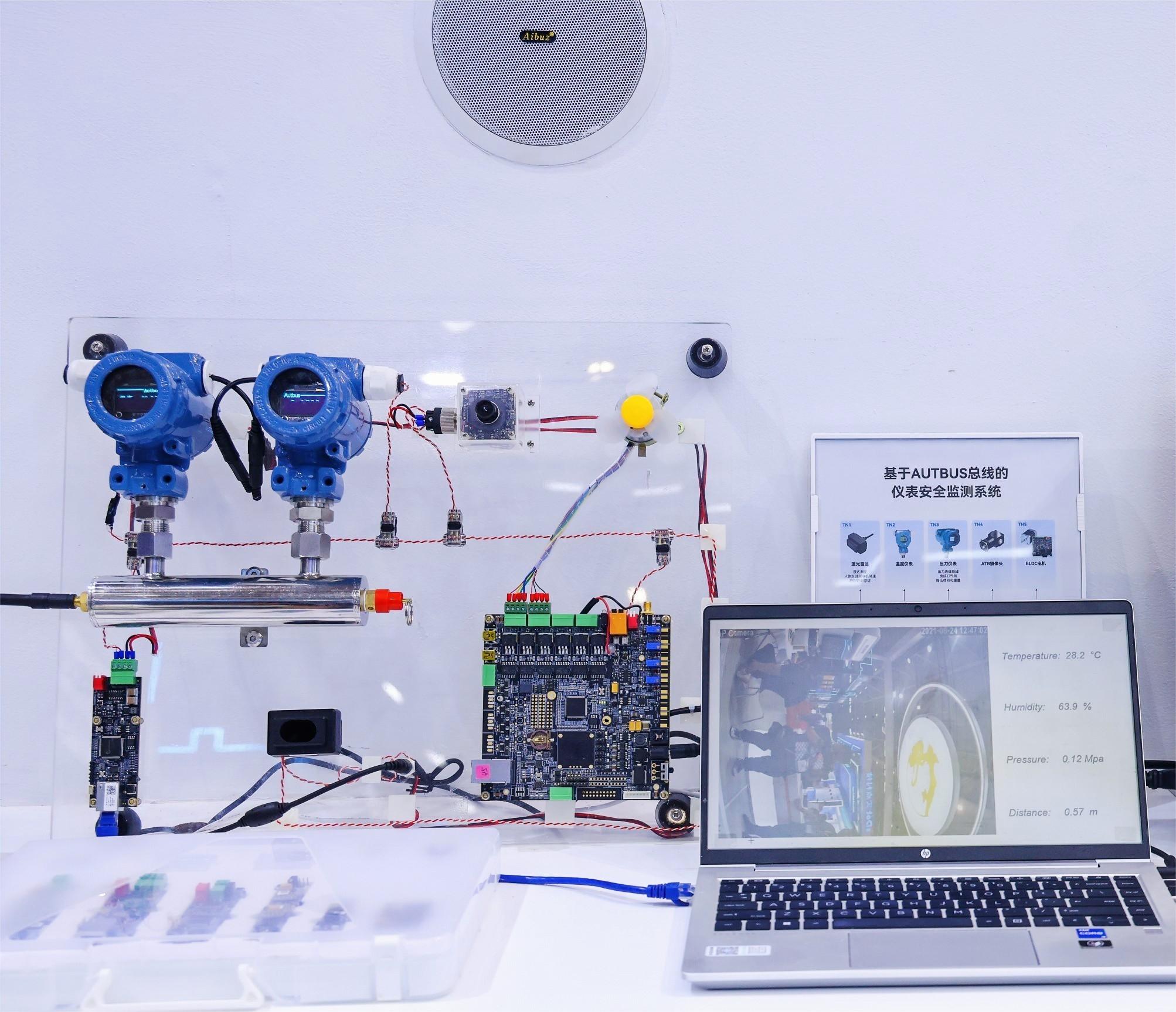 此次参展的AUTBUS总线的仪表安全监测系统DEMO重点展示了基于宽带实时总线技术AUTBUS的解决方案。该方案展示了仪器仪表、控制器、执行机构以及智能化设备之间基于AUTBUS的一网到底确定性通信。