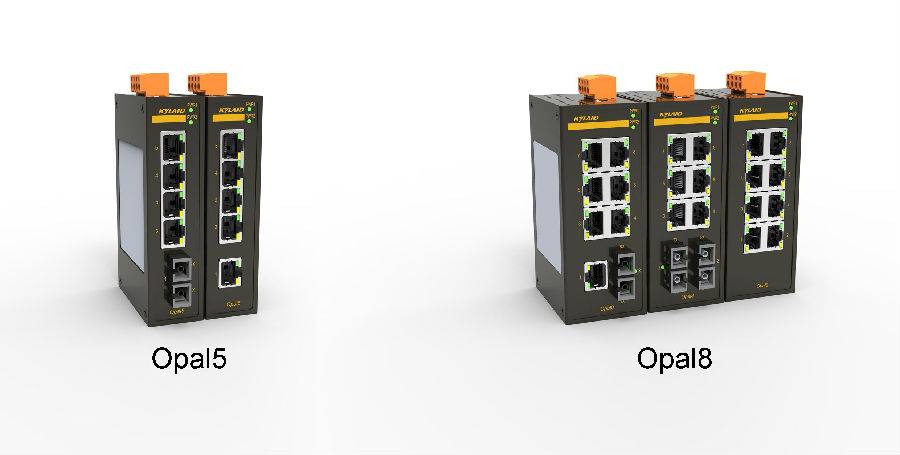 Opal5和Opal8入门级非网管交换机是专为工业自动化控制领域设计的产品。Opal5支持1个百兆光电可选接口和4个百兆RJ45电口。Opal8支持2个百兆光电可选接口和6个百兆RJ45电口。 设备顶部的拨码开关可用于控制广播风暴抑制功能的开启和关闭。Opal5和Opal8都支持SC/ST/SFP百兆光口类型,9-60VDC宽范围冗余电源输入,IP30防护等级的金属外壳,可选的窄温(-10 to 60℃)和宽温(-40 to 75℃)型号,满足了不同工业应用要求,以及确保了恶劣工业环境中快速和可靠的数据传输。