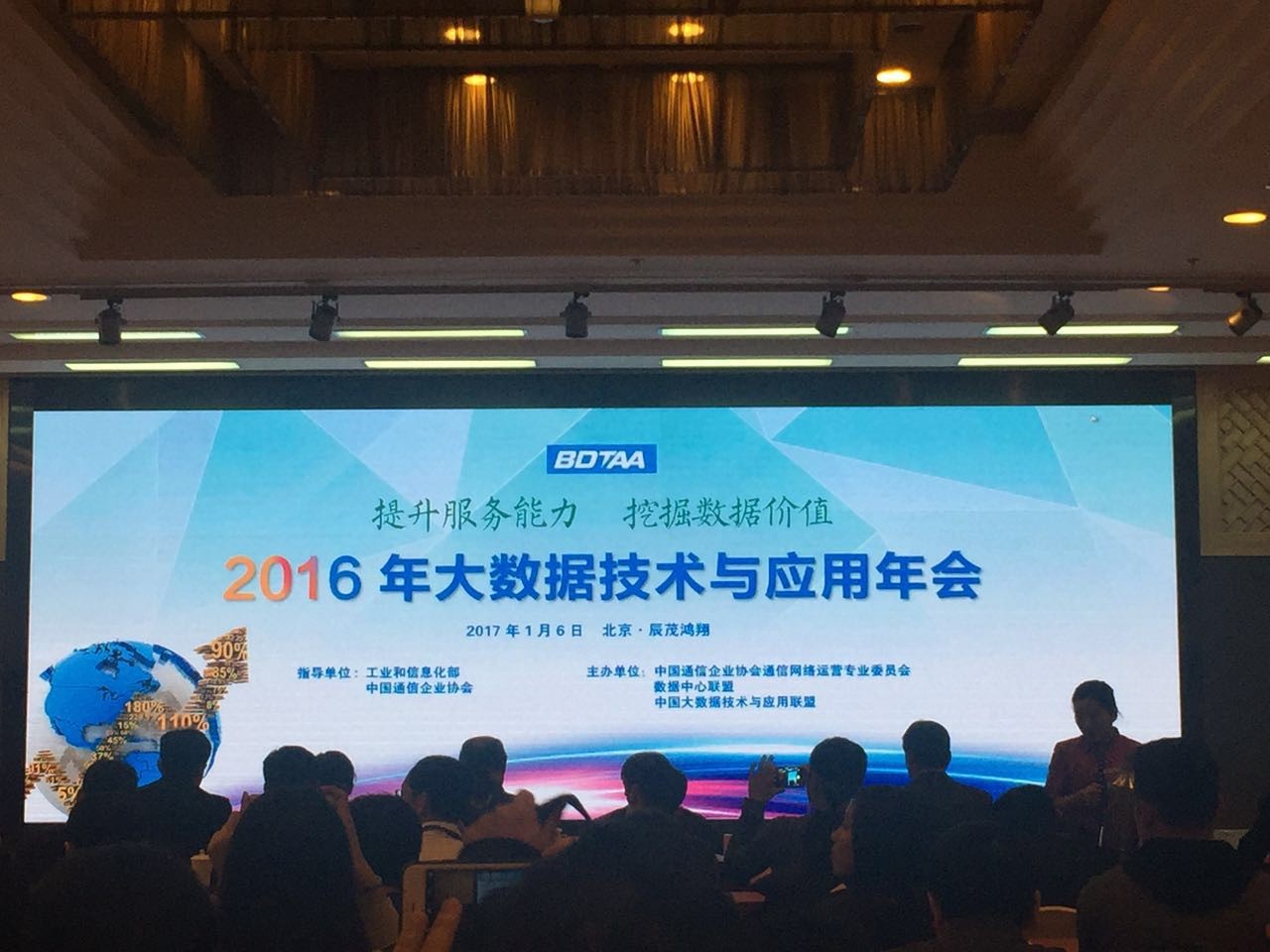 “2016年中国大数据技术与应用年会”于2017年1月6日在北京举行,本届年会由中国通信企业协会通信网络运营专业委员会、数据中心联盟、中国大数据技术与应用联盟联合主办,工业和信息化部领导、中国通信企业协会及各省行业协会领导、中国信息通信研究院、规划设计院所代表,行业专家、中国电信、中国移动、中国联通、互联网企业代表、大数据生产企业、提供技术、挖掘、分析、应用的企业、媒体代表等百余人参加了本届年会。