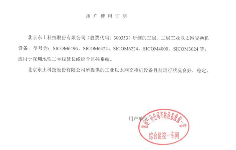 此外,2号线选用的工业交换机,其铝制外壳防护等级达IP40,其电路板卡三防涂覆处理,在深圳地下严酷的环境中具有良好的防尘、防潮、防盐雾腐蚀的能力;其抗电磁干扰能力达工业4级,在高密度电子电气设备的轨道交通中,能以良好的电磁兼容性适应环境。