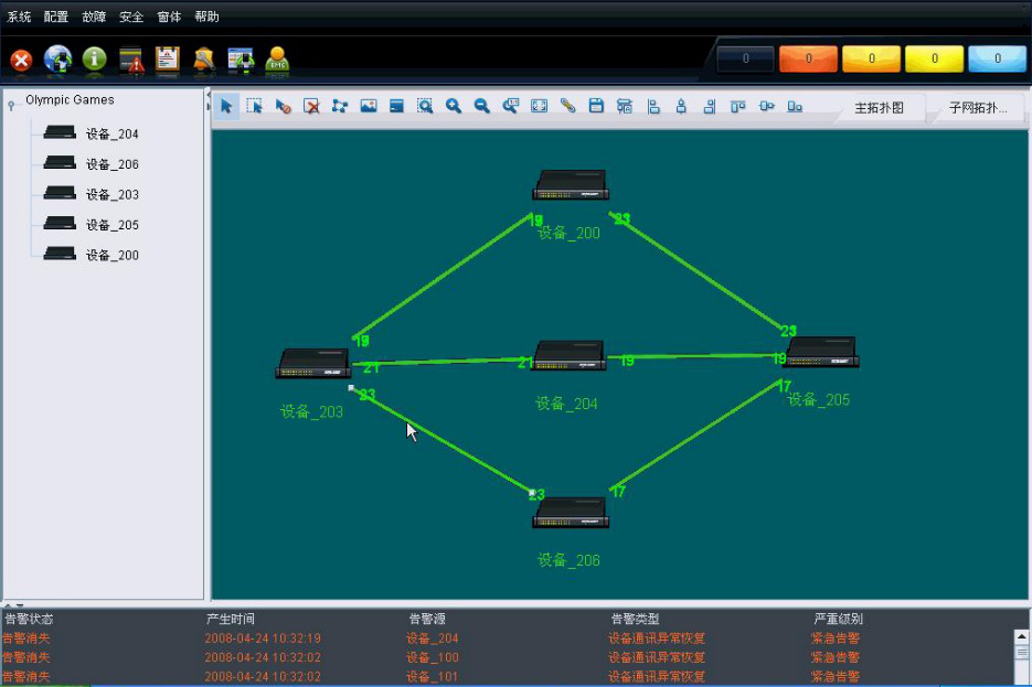 线路级网络管理软件可以通过SNMP协议实现SC、LC侧的网络交换机管理,显示当前线路网络交换机的拓扑情况并能够实现故障告警监测,端口流量检测及历史告警记录分析等。