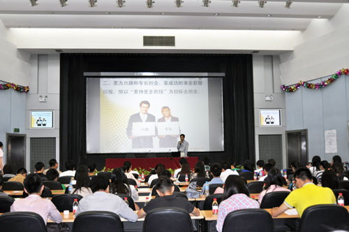 讲座上,李总结合自身的创业经历,分享了自主创业过程中的感悟,建议创业者要从创业动机、创业领域选择、创业计划、风险控制、团队意识和创业心态等方面进行充分地准备,强调了创业者应具备的基本素质,为同学们的创业之路提供了指导性意见。随后,李总就学生关心的话题进行了互动,深入解答学生提出的创业问题,并高度赞扬了学生们的创业激情和创业梦想。精彩的讲座,深入的分享,受到了学生的热烈欢迎,讲座持续1个半小时,结束时同学们仍感意犹未尽,纷纷与李总进行场下交流和咨询。