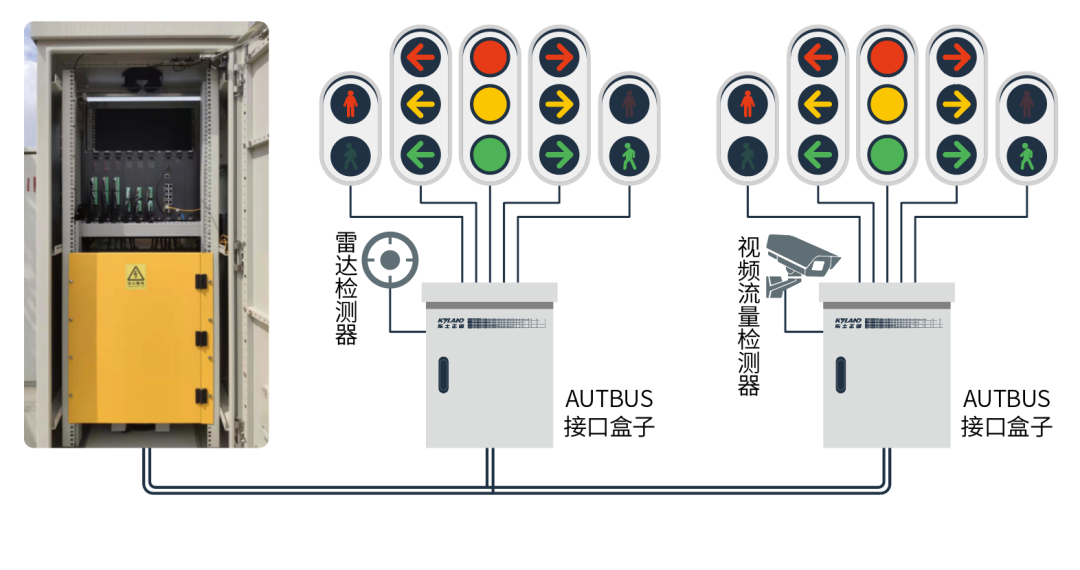 AUTBUS支持在标准双绞线上传输100M带宽数据至500米的距离,不仅可以实现灯具的总线式接入,还可以对路口的各种检测设备包括视频和传感器进行接入,确保用最少的布线实现路口设备IP化互联与管理。同时,AUTBUS总线还可以支持环网冗余与双总线冗余的方式,确保现场网络可靠性达到工业级的标准。