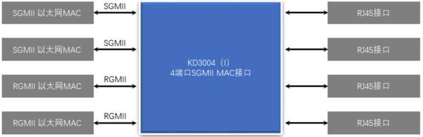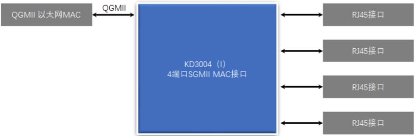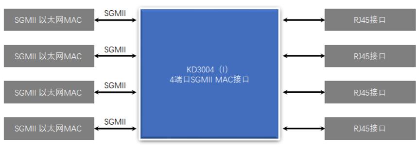 在SGMII应用模式下,KD3004是一个四端口SGMII MAC电口收发器。