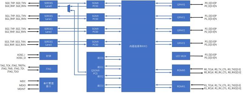 MAC侧支持支持RGMII、SGMII及QSGMII