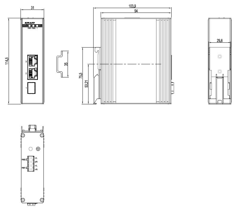 12-48VDC/18-30VAC,冗余输入 | 31mm×114.5mm×94mm |