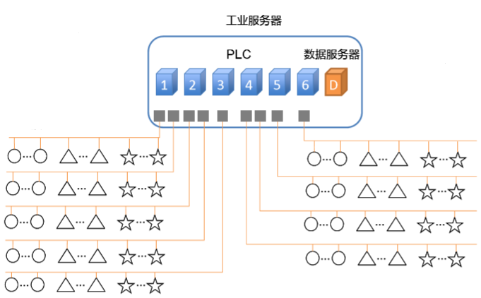 工业服务器主机替代了1 台数据服务器, 6 台 PLC 控制器