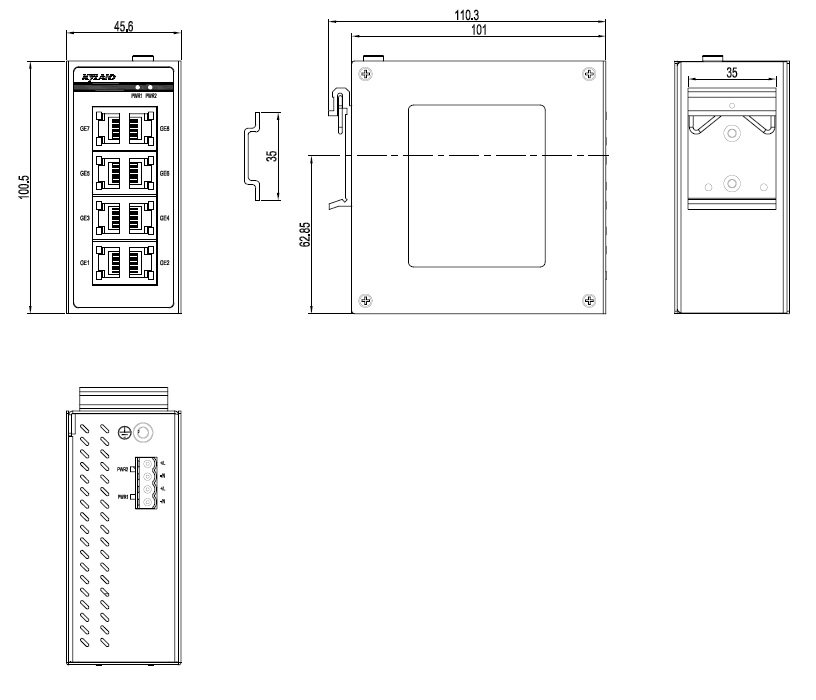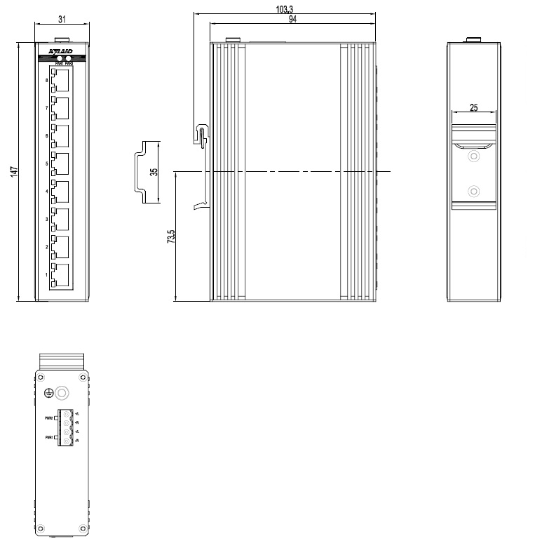| Opal8G-8GE-LV-LV | 8×10/100/1000Base-T(X) RJ45电口 | 12-48VDC/18-30VAC, 冗余输入 | 31mm×147mm×94mm |