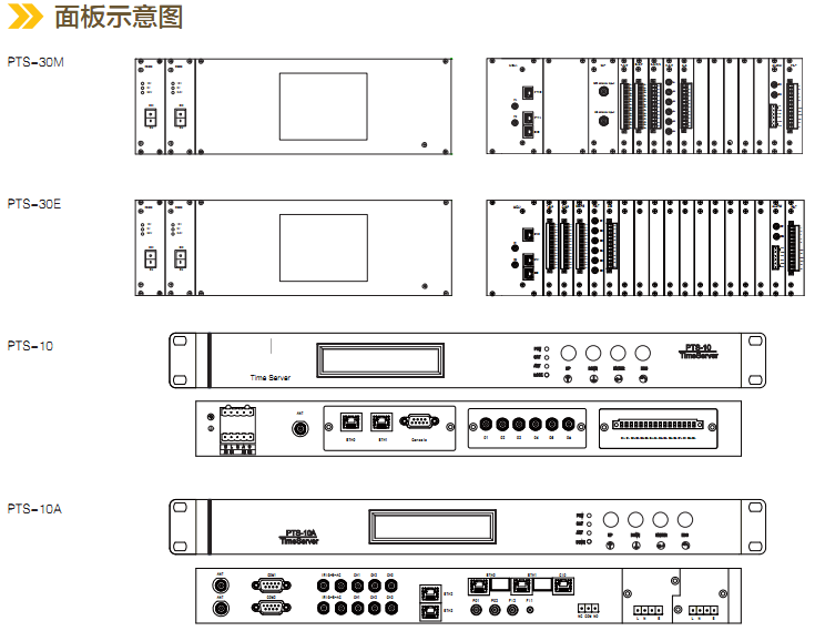 | 安装方式 | PTS-30 WxHxD: 483 x 135 x 280mm 重量 : 8.0kg 安装 : 3U 19寸机架式安装 PTS-10 WxHxD: 483 x 45 x 280mm 重量 : 4.5kg 安装 : 1U 19寸机架式安装 PTS-10A WxHxD: 483mm x 45mm x 280mm 重量 : 4.5kg 安装 : 1U 19寸机架式安装 |