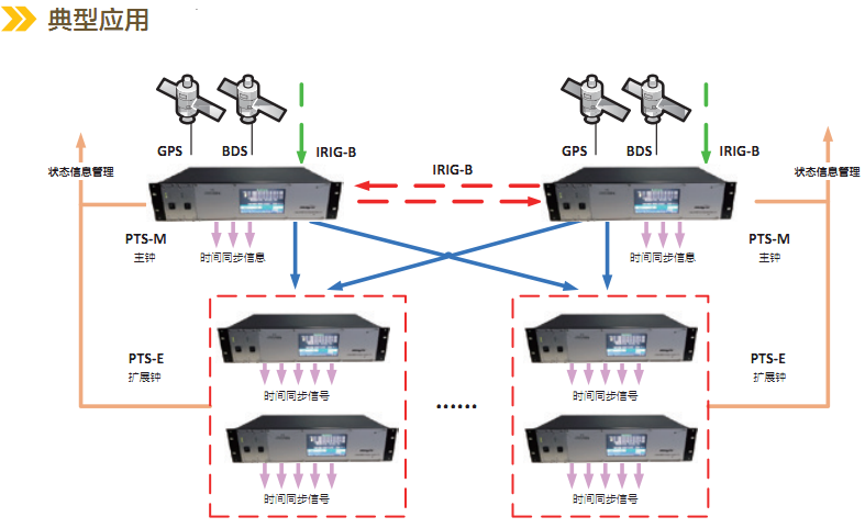 时间同步服务器的基本概念是利用北斗 (BDS) 或者 GPS 等外部时间信号建立产品内部基准参考时间,并利用OCXO或者铷原子钟等建立时间频率的驯服机制,并利用各种时间输出信号完成与所有被授时系统及设备的时间同步,同时时间同步服务器需要通过各种途径可以提供时间同步服务器的状态信息监测,进行时间同步的管理,可通过 IEC61850、IEC60870、DNP、SNMP 等实现状态传输和管理。