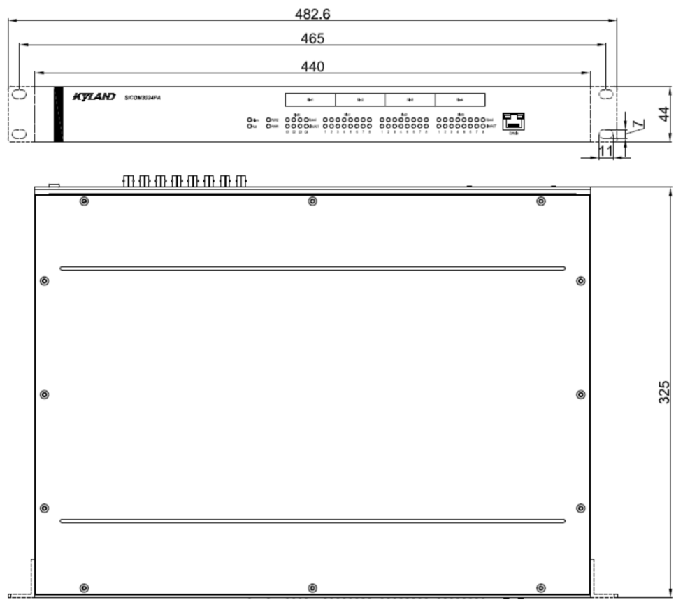 | 机械结构 | 外壳 金属材质 散热方式 自然冷却,无风扇 防护等级 IP40 尺寸 482.6mm×44mm×325mm(W×H×D) 重量 <6.5Kg 安装方式 19英寸1U机架式 |