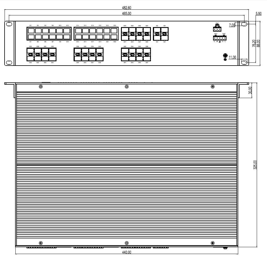 | 机械结构 | 外壳 金属材质 散热方式 自然冷却,无风扇 防护等级 IP40 尺寸 482.6mm×88mm×325mm(W×H×D) 重量 10.5kg 安装方式 19英寸2U机架式 |